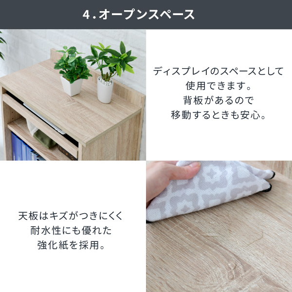 当商品は、カウンターと一体になっており、カウンター下に収納スペースを設けているため、室内をスッキリさせながら、小物や本などを丸ごと収納できるようになっているのです。