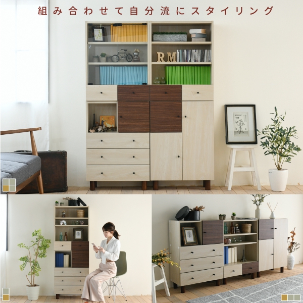 当商品には、扉付き収納とオープン収納、それから引き出しが搭載されています。